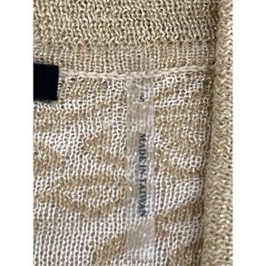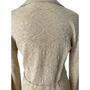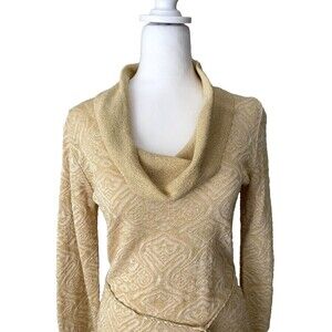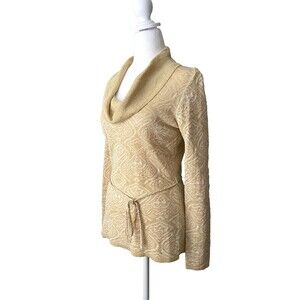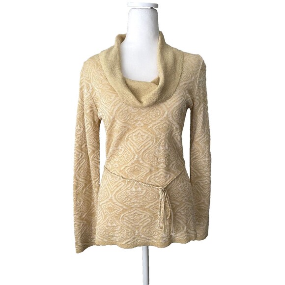 Vintage Y2K Gold Metallic Knit Top S Jacquard Cowl Neck Tie Belt 70s 90s Elegant
