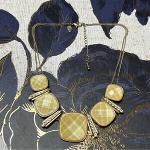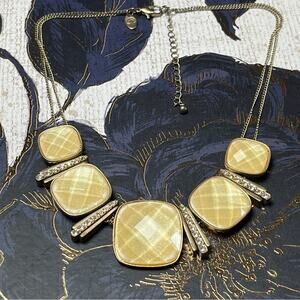 Vintage Y2K Gold Statement Necklace with Yellow Crystals and Rhinestones D2