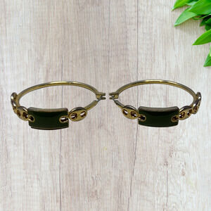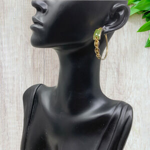 Vintage Y2K Gold Tone Chain & Enamel Detail Hoop Earrings Pierced Avant Garde