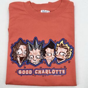 Vintage Y2K Good Charlotte T Shirt Medium 2002 Band Cartoon Heads Punk Rock