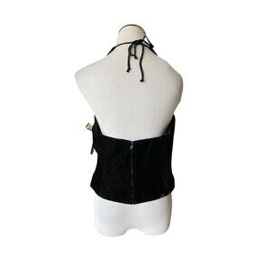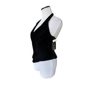 Vintage Y2K Gothic Crushed Velvet Halter Corset Top Size 16 Black Witchcore Vamp