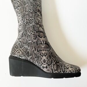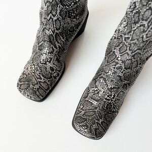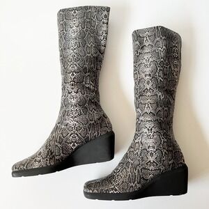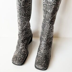 Vintage Y2K Gothic knee high boots wedge heel square toe snakeskin 37