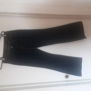 dark wash , look pretty good no holes distressing or staining, rise measures 8" from crotch to waist inseam measures almost 29" waist lying flat measures 15, tag size 7 Short. 5 pocket style with belt loops, button zip fly, pet friendly non smoking home