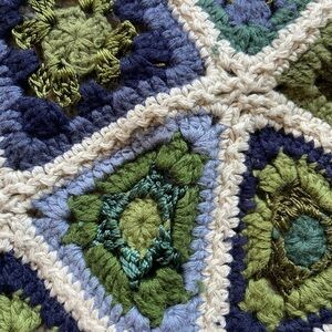 Vintage Y2K Granny Square Cardigan Sweater Crocheted M Petite Boho Cottagecore