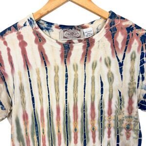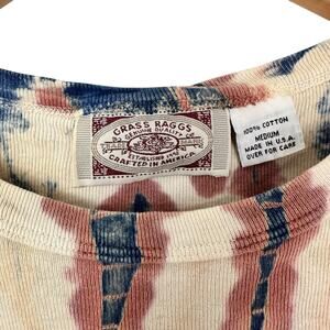 Vintage Y2K Grass Rags 100% Cotton Made in USA Ribbed Earthy Tie Dye Tee Sz M | good pre owned condition. Some wear such as loose threads at hem (see close-ups)