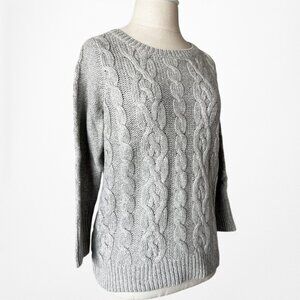 Vintage Y2K Gray Metallic Cable Knit Oversized Wool Blend Sweater Size S