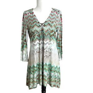 Vintage Y2K Green Crochet Tunic Top M Studded Chain Fairycore Grunge Whimsigoth