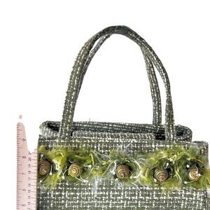 Vintage Y2K Green Preppy Funky Beads Tweed Cottage Girly Handbag Purse