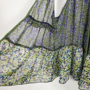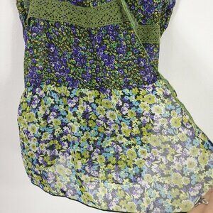 Vintage Y2K Green Sheer Floral Print Open Tank Layering Top