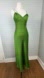 Stunning green slip dress with double spaghetti straps. The back has a concealed zipper closure and the straps have a flattering placement. The dress has a sheer fabric with a subtle sheen over a satin lining. The dress is cut on the bias so it hugs your curves in the most flattering way.