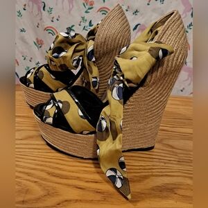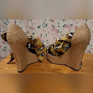 Vintage Y2K Gucci Platform Boho Jute & Silk Wedge Espadrille Shoe SZ 36.5 US 6