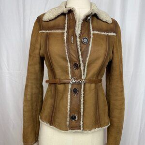 Vintage Y2K Gucci Suede Leather Shearling Jacket Size 38