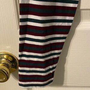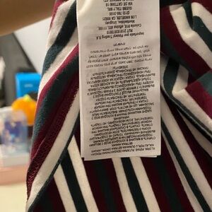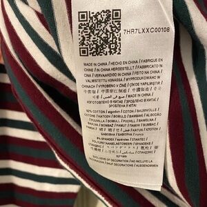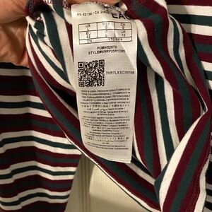 NWOT Guess Original 1981 Green, Wine & White striped, deep wine / ever forest crop top, Long Sleeve, fitted, Sz L, pullover, stretch, guess logo name knitted, made in China, designed in California, machine washable, 92% cotton 8% spandex, UPC