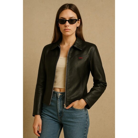 Step into iconic early-2000s style with this authentic Vintage Y2K Guess genuine leather jacket featuring a sleek reptile-embossed texture and classic zip-front moto silhouette. This jacket delivers effortless edge with a fitted cut that flatters while still giving that bold, confident streetwear attitude.