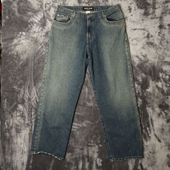 Vintage Y2K Guess Jeans Baggy Wide Leg Fadded Stone Wash Size Mens 34x36