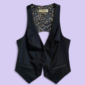 Vintage Y2K Guess Jeans Black Beaded Vest Medium Leopard Lining Adjustable