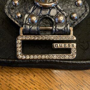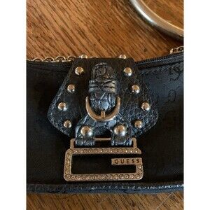 Vintage Y2K Guess Mini Bag Purse Black Studded Chain Madonna 80's Jeweled Logo