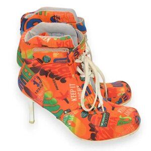 Vintage Y2K Halloween Orange Comic Graffiti Sneaker Heels Ankle Boots Booties 9