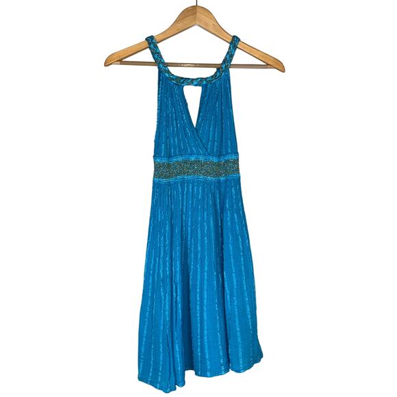 Vintage Y2K Halter Going Out Dress Women XS Empire Waist Aqua Mermaid Shimmer
