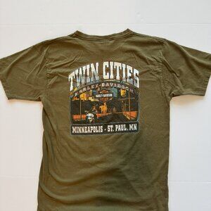 Vintage Y2K Harley Davidson 2006 Twin Cities Minneapolis MN Army Green Large Tee
