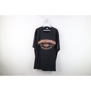 Vintage Y2K Harley Davidson Mens 2XL Faded Spell Out Big Logo T-Shirt Black