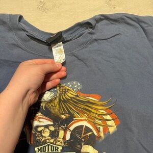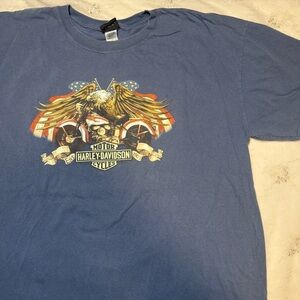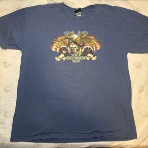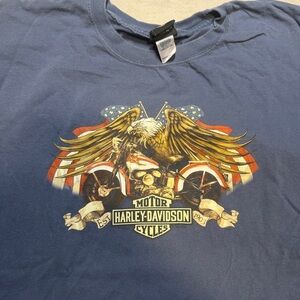 Tags: vintage, y2k, harley davidson, beartooth harley, wyoming shirt, patriotic tee, bald eagle graphic, double-sided tee, biker style, motorcycle shirt, americana, 2000s fashion, streetwear, oversized tee, rare harley