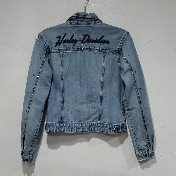 Vintage Y2K Harley-Davidson Jean Jacket With Embroidery & Studs