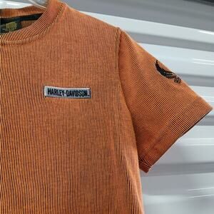Vintage Y2K Harley-Davidson Women's Size Medium Short Sleeve Orange Ribbed Crew Neck Pullover Top Sweater T-Shirt.