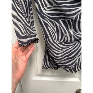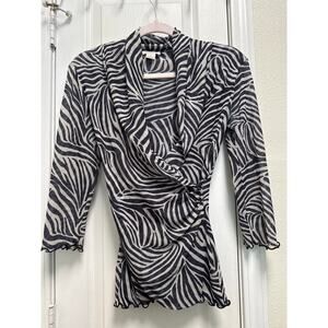 Vintage Y2K Harold's Sheer Mesh Wrap VNeck Lettuce Hem Zebra Print Top Size Med