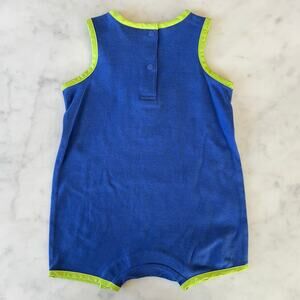 Vintage Y2K Hawaii Surf Hibiscus Flower Blue and Green Sleeveless Romper / 12 M