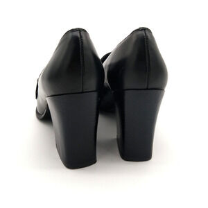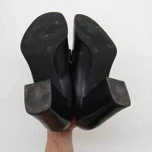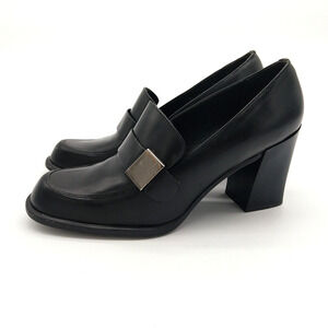 Vintage late 90s to Y2K black leather Hillard & Hanson oxfords with a chunky 3" heel. They are gently pre-owned and free from any stains or flaws. May show light wear or scuffs from normal use.