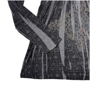 Keywords: vintage tunic top, rhinestone hoodie, whimsygoth, boho chic, Y2K, festival top, graphic print, stretchy knit top, layered look, artsy aesthetic, comfy casual, long sleeve tunic, cottagegoth, soft girl grunge, scene outfit, emo