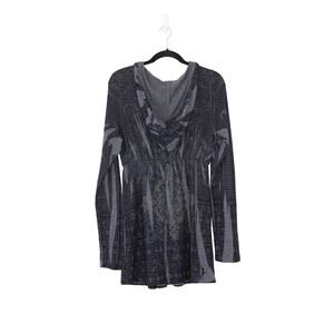 Vintage Y2K Hooded Graphic Tunic Top Whimsigoth Goth Fairy Grunge Emo Black L