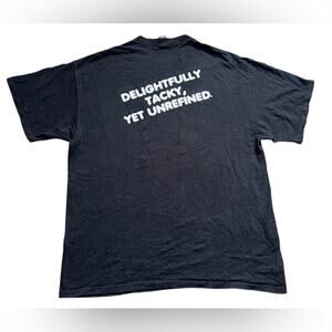 Tagged size XL on a Delta Medium Weight blank. early 2000s. Soft black cotton with natural vintage fading and some light wear. Double-stitched sleeves and hem.