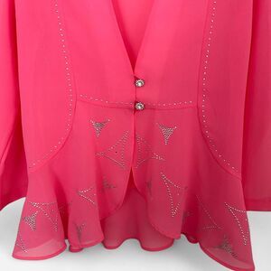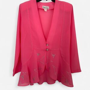 Vintage Y2K Hot Pink Rhinestone semi sheer Cardigan Silver Sparkle Sz M