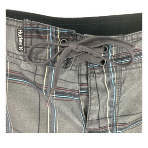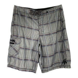 Vintage Y2K Hurley Sz 34 Gray Windowpane Plaid Board Shorts Swim Surf Skater