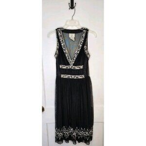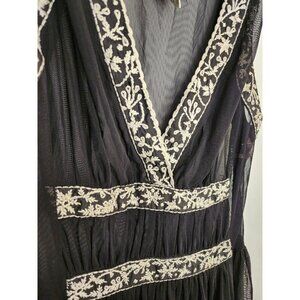 Vintage Y2K ICE Black Mesh Embroidered Bodice Flowy Dress Size 8