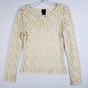 Vintage Y2K INC Blouse Top Pullover Wool Blend Lace Sheer Fitted Stretch size M