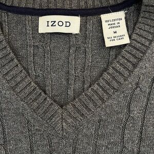 Vintage Y2K IZOD 100% Cotton Cable Knit Sweater Vest Heather Gray V-Neck Medium