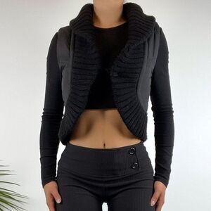 Vintage Y2K Indie Grunge Black Knit Cropped Puffer Vest / Size: Small