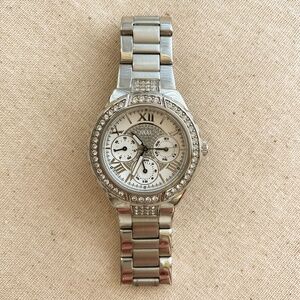 Vintage Y2K Inspired Guess Silver Tone Diamond Gem∙Oversized Round Roman Numeral Month/Date Day/Day Week∙Water Resistant 50MM∙Soft for Her