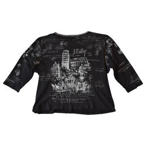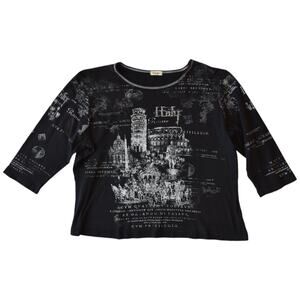 ○ Monochromatic graphic, bedazzled, 2000s style, three quarter sleeve