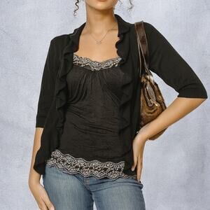 Vintage Y2K It’s Our Time Black Ruffle Open Cardigan Medium