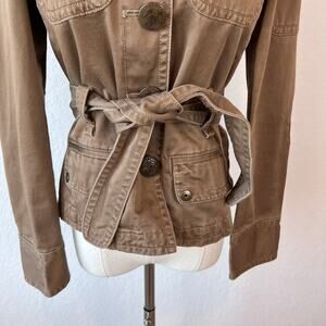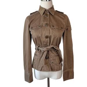 Vintage Y2K J Crew Military Utility Cargo Jacket size XS Cotton Belted Tan