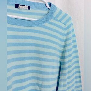From 2004, this cute tight fitting sweater is striped with mint and light blue. Size small but as most J. Crew it runs on the smaller side. Pair it with your preppiest khakis, jeans, or corduroy to complete the authentic early 2000s look. :-P