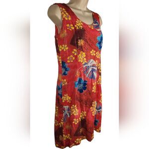 Collectible vintage Y2K JAMS WORLD Hawaiian Floral Tank Dress Sleeveless Short Red Yellow Blue Print A Line Zipper Back