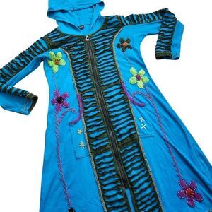 Vintage Y2K Jacket Hoodie Womens Large Boho Hippie Embroidered Duster Made in Ne