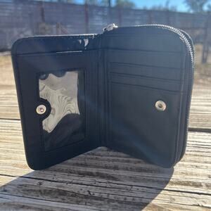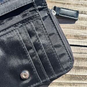 * Features: Zip-around coin section with inner zip pocket, 3 card slots, 1 ID window, snap closure