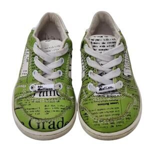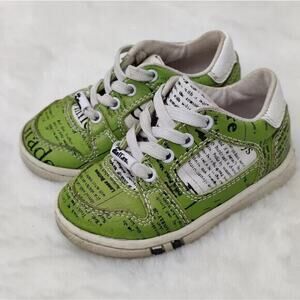 Vintage Y2K John Galliano Green newspaper Print sneakers sz 20/4.5 us