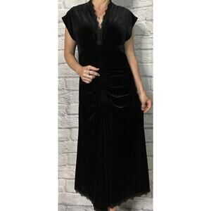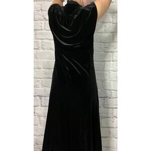 Vintage Y2K Jonathan Martin Black Velour Front-Ruched Formal Dress
